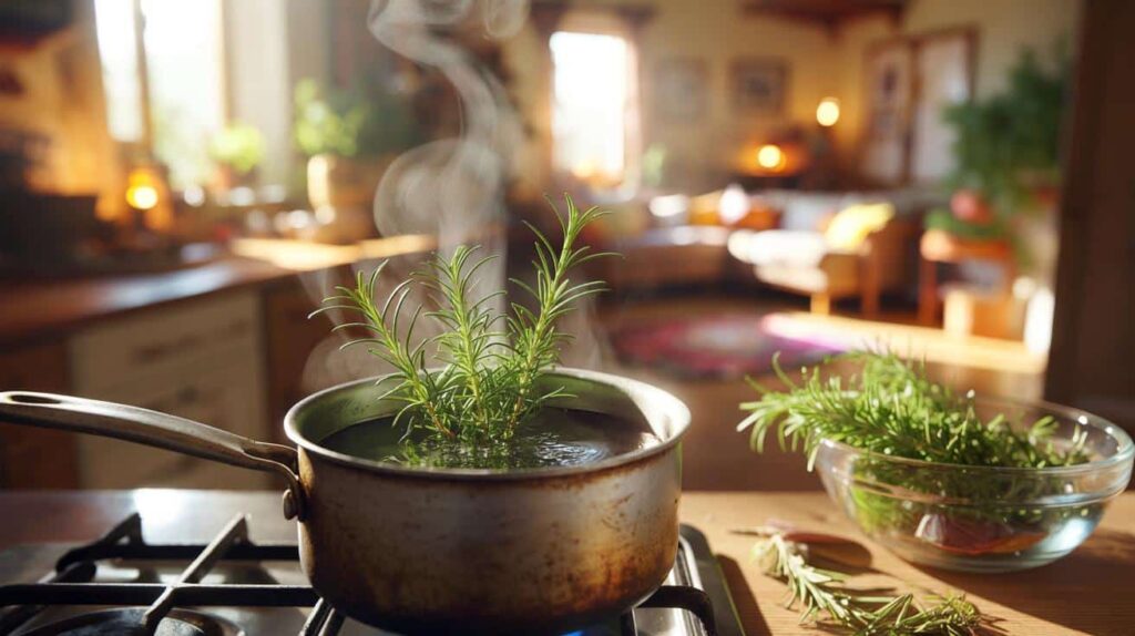 There’s something almost old-world about boiling rosemary on the stove. No diffuser, no fancy oils, no complicated wellness routine. Just a pot, some water, and a handful of green needles that look like nothing much until the heat wakes them up.
