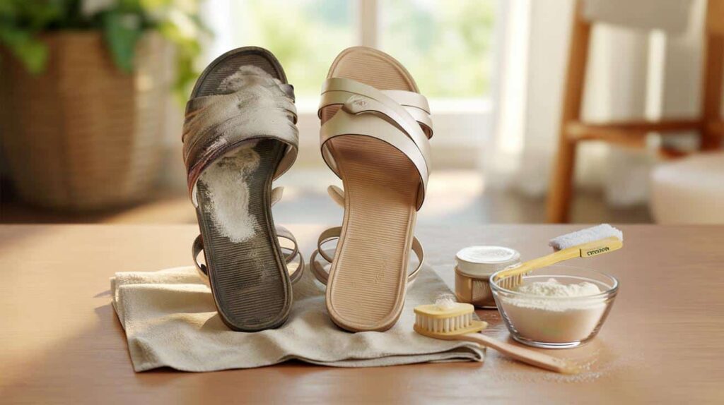 The most effective trick looks almost disappointingly simple: a gentle paste of baking soda and mild soap, applied like a face mask for your sandals, then lifted with a damp microfiber cloth and time to dry fully in the shade. That’s it. No miracle foam, no expensive cleaner, no harsh alcohol that cracks the insole.