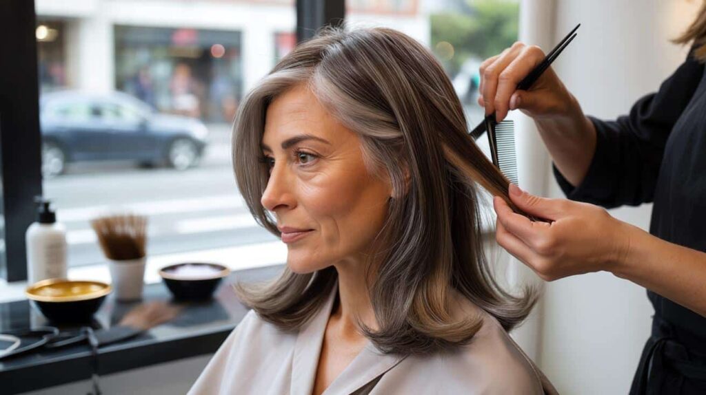 Ask your colorist about grey conversion, repigmentation, or blending techniques tailored to your pattern, not a trend name. A pro will suggest bringing your base color slightly lighter and softer, so the contrast with your natural grey drops. That’s the real secret: reducing contrast, not chasing one perfect color.