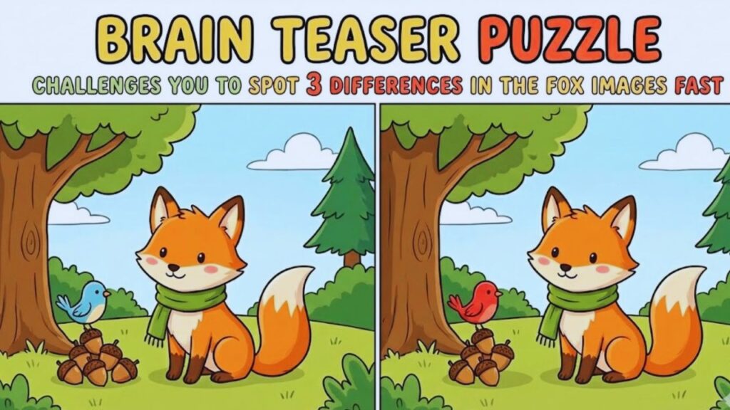 Brain teaser puzzles offer an entertaining method to improve observation abilities and this fox challenge follows that pattern. People in India frequently share these visual puzzles on social media as brief mental exercises that work well with hectic schedules. The task seems straightforward but proves challenging: find three small differences between two similar fox pictures quickly. This exercise evaluates how well someone notices details and remembers visual information while providing an enjoyable activity for people of different ages along with a gentle mental workout.