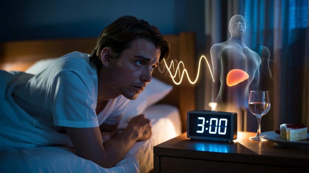 Alcohol deserves special mention. Many people fall asleep faster after a drink, but the effect is deceptive. The liver works hardest to break down alcohol in the middle of the night – right in that 2 to 4 am window.