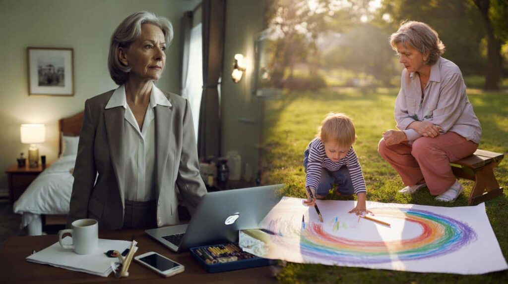 Instead, I was on a park bench, watching my grandson concentrate very hard on drawing a crooked rainbow with a stubby crayon. My phone buzzed on the bench beside me, lighting up again and again. I watched his tiny hand try a second rainbow, then a third, and I felt something I hadn’t felt in years: a calm, expansive joy.