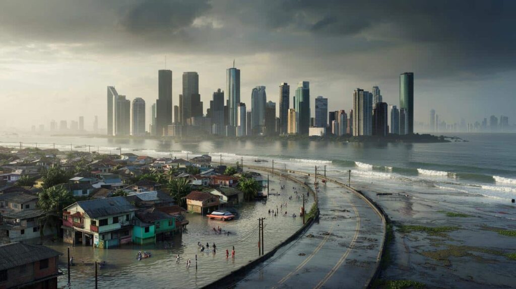 Low-lying neighbourhoods may become uninsurable first. Infrastructure costs may outstrip local budgets. Wealthier residents might move uphill, while poorer communities remain in zones that flood several times a year. Over a generation, parts of the city effectively cease to function, even if the skyline is still visible.