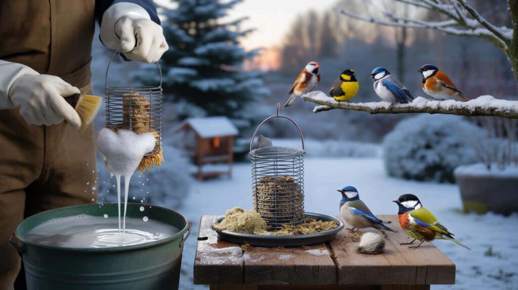 | 2 | Empty feeders completely, including old seed and debris. | Removes the main reservoir of bacteria and mould. |
